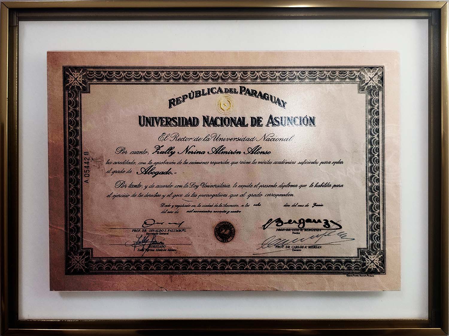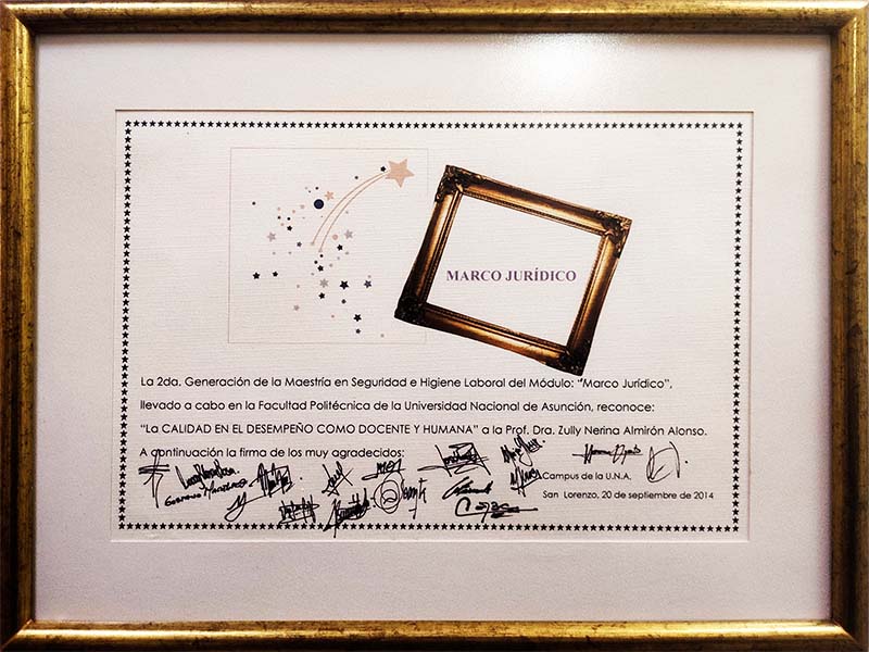 Abogada, egresada de la Facultad de Derecho y Ciencias Sociales de la Universidad Nacional de Asunción (U.N.A). Docente con Post grado en Didáctica Universitaria; Co autora del libro “Normas de Seguridad en el Trabajo” con tres ediciones lanzadas. Autora del libro “Vínculos entre el Derecho Ambiental, la Seguridad Ocupacional y la Responsabilidad Social”. Certificada como Conferencista año 2.011 en Responsabilidad Total por el Instituto Panameño “Latin American Quality Institute”. Ha dictado varios cursos y charlas sobre Derecho del Trabajo, Seguridad, Higiene y Medicina Ocupacional y Responsabilidad Social Empresarial organizados por la Facultad de la Politécnica de C.D.E. U.N.E. y en la Universidad de la Integración de las Americas – Unida. Realizó varios trabajos de diagnóstico para la implementación de ajustes en el área laboral y de recursos humanos de varias empresas reconocidas en Paraguay, con criterios de RSE.